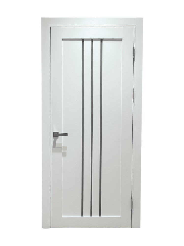 Varčia, matinis stiklas, stakta, tylaus uždarymo spyna, išoriniai vyriai, frezavimai spynai staktoje ir varčioje
